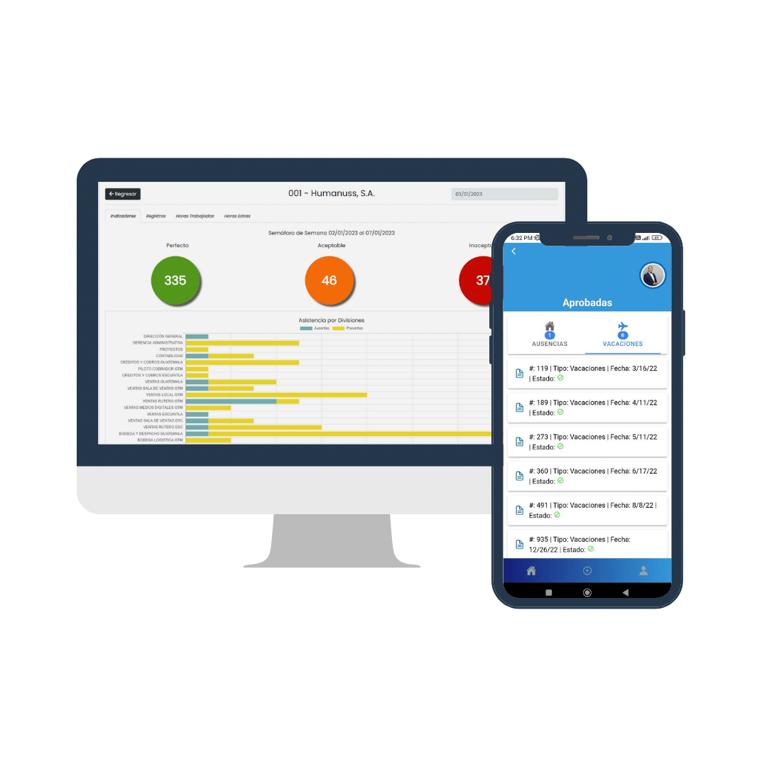 Revisa todas las notificaciones, aprobación de vacaciones o permisos, también puedes marcar tu entrada y salida desde donde quiera que estés con geolocalización.